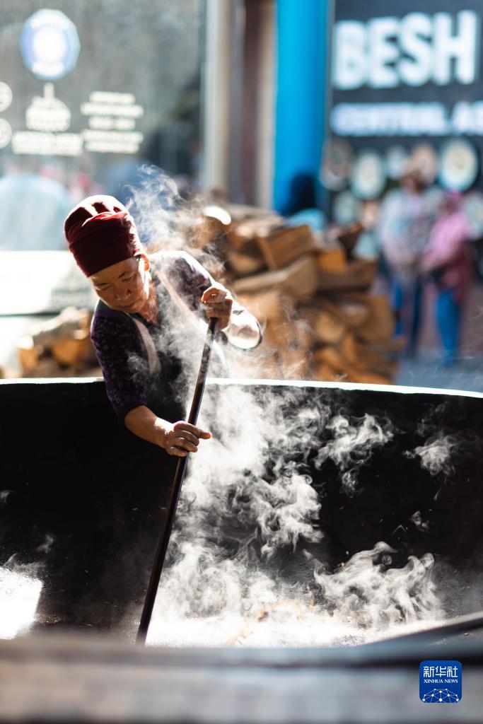 9月13日,在烏茲別克斯坦首都塔什干,工作人員清洗制作抓飯的大鍋。