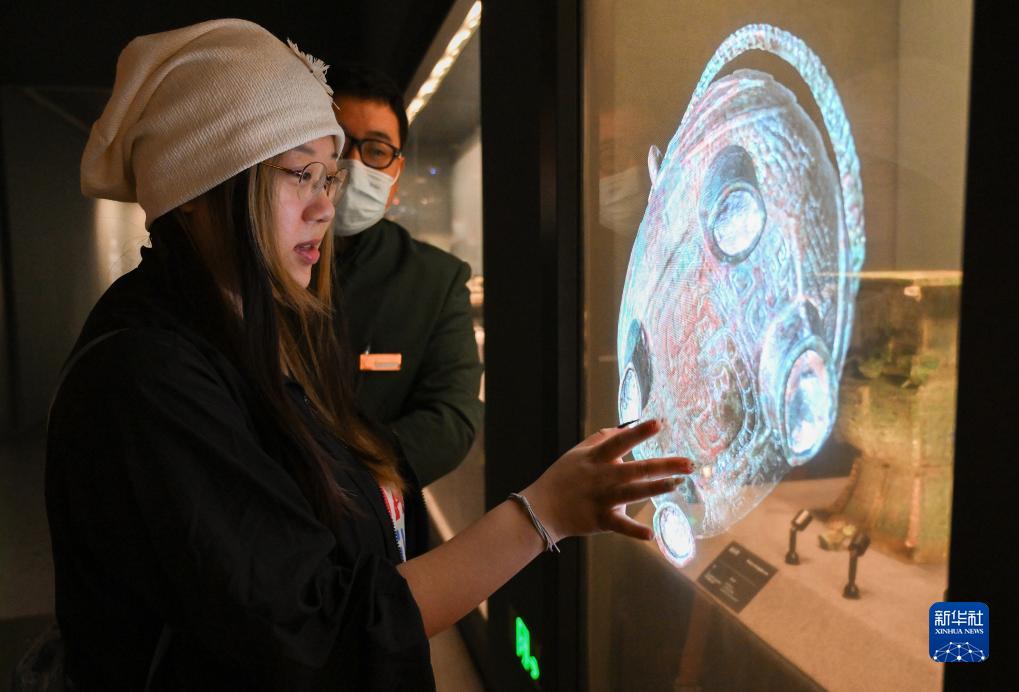 9月15日,一位觀(guān)眾在館內展區的互動(dòng)屏幕上的體驗沉浸式參觀(guān)的樂(lè )趣。