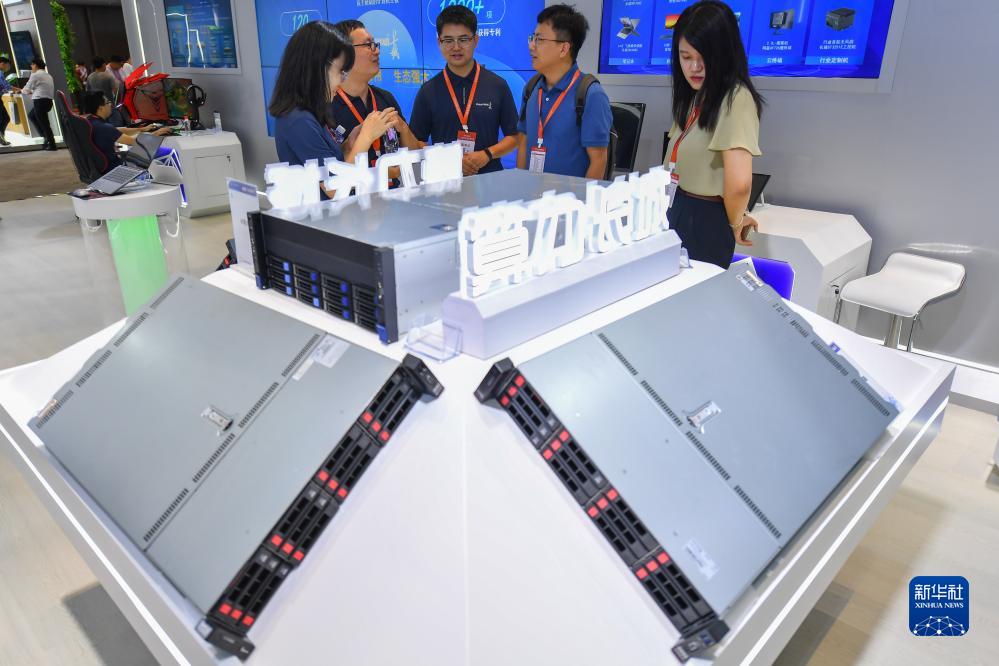 9月15日,參觀(guān)者在2023世界計算大會(huì )專(zhuān)題展上了解AI服務(wù)器。