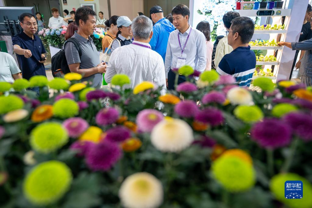 9月15日,參展商在第二十一屆中國昆明國際花卉展上洽談業(yè)務(wù)。