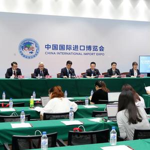 這是9月15日拍攝的第六屆進(jìn)博會(huì )開(kāi)幕倒計時(shí)50天新聞通氣會(huì )現場(chǎng)。