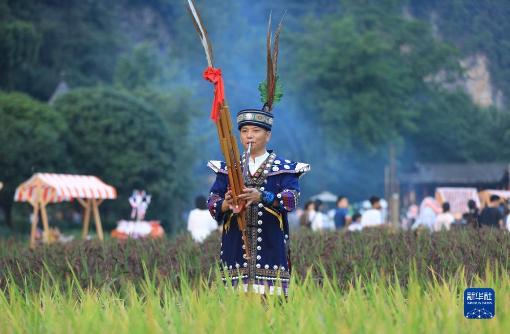 當日,湖南省張家界市武陵源區黃龍洞景區舉辦“田園市集慶秋收”活動(dòng)。金黃的稻田旁,游人可欣賞民俗文化節目,還可品嘗特色小吃、購買(mǎi)當地特色農產(chǎn)品和手工藝品,感受豐收的喜悅。