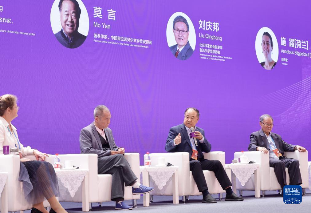 9月15日,作家莫言(右二)在“以文化人:文藝價(jià)值與社會(huì )生活”平行論壇的“中國文學(xué)與世界對話(huà)”圓桌對話(huà)現場(chǎng)發(fā)言。