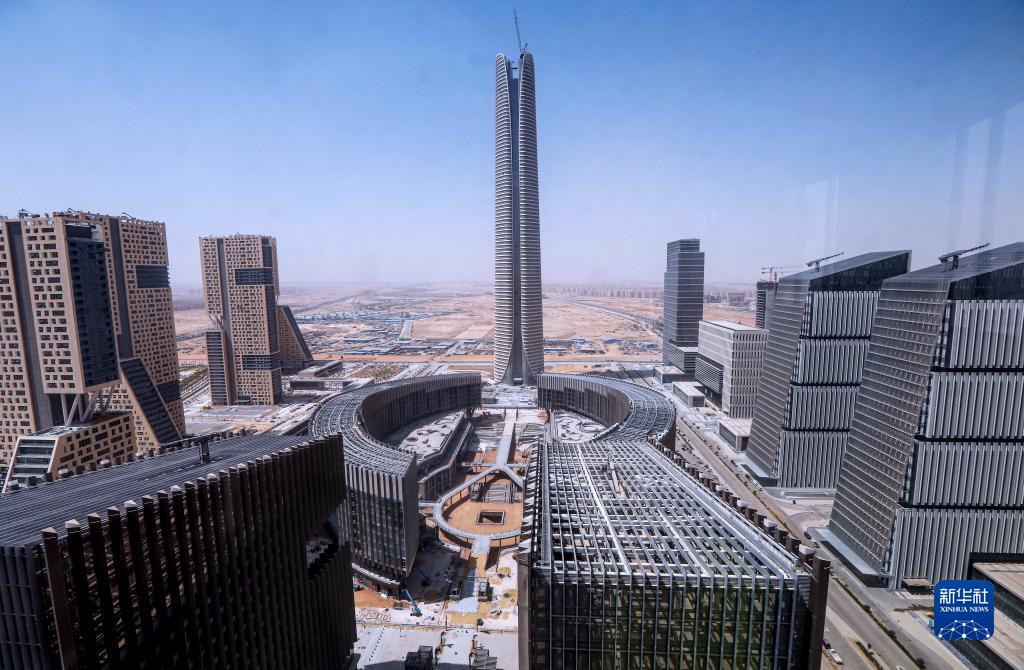 這是9月11日在埃及開(kāi)羅以東拍攝的建設中的新行政首都中央商務(wù)區。