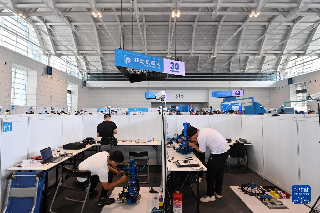 9月16日,選手參加移動(dòng)機器人項目比賽。