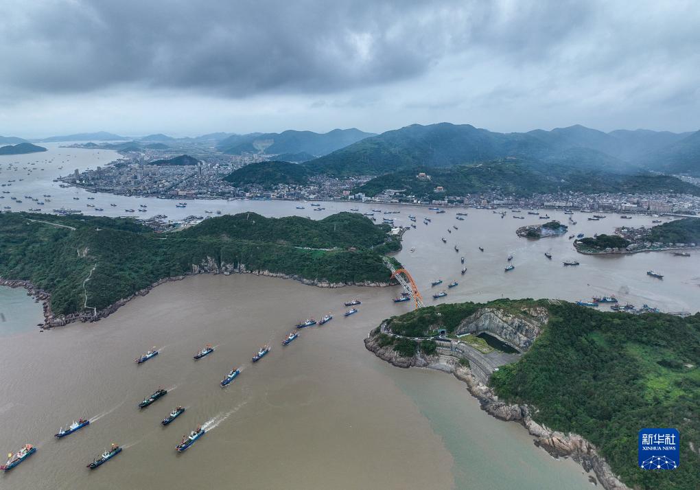 9月16日,漁船從浙江省寧波市象山縣石浦港出海(無(wú)人機照片)。