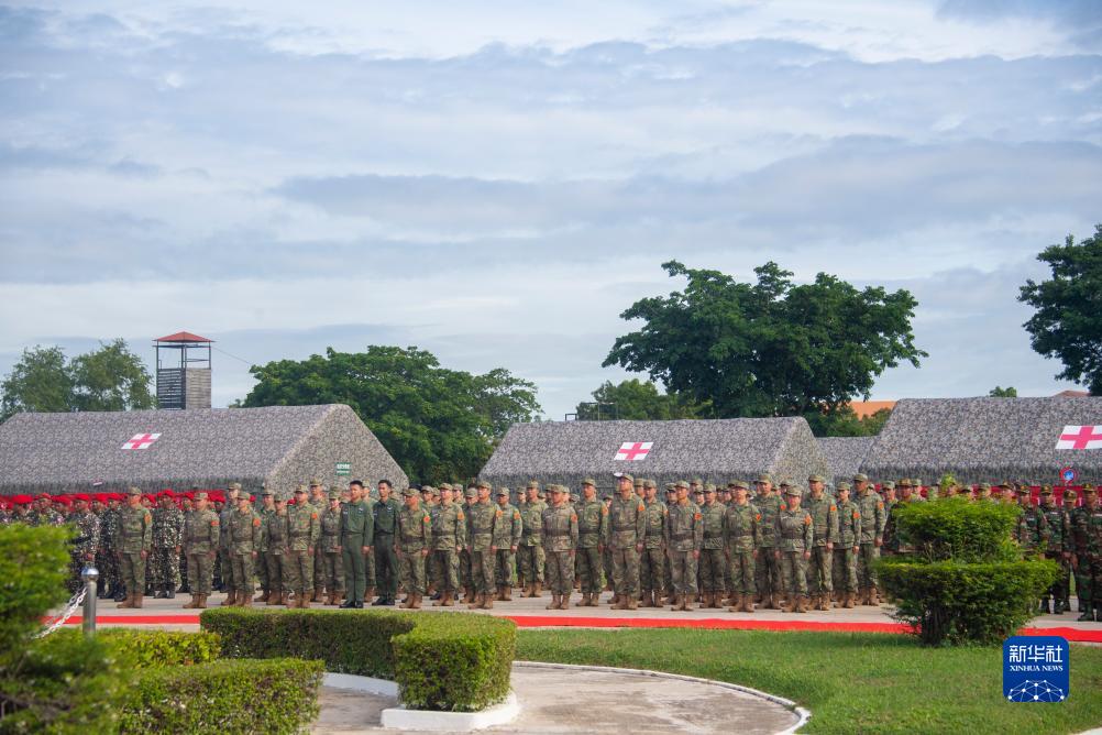 9月16日,“和平天使-2023”中柬衛勤聯(lián)合演習部隊在柬埔寨首都金邊等候檢閱。