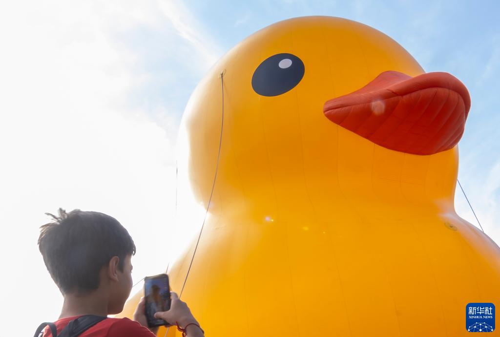 當日,一只6層高、重約13.6噸(30000磅)的橡皮“大黃鴨”亮相多倫多,吸引了眾多游人。這是“大黃鴨”繼2017年后再次來(lái)到多倫多,從9月16日至17日向公眾開(kāi)放。