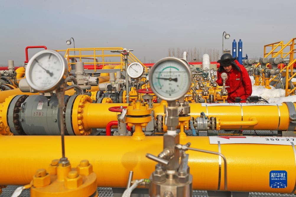 在盤(pán)錦遼河油田儲氣庫群,工人在作業(yè)區巡檢(2021年2月3日攝)。