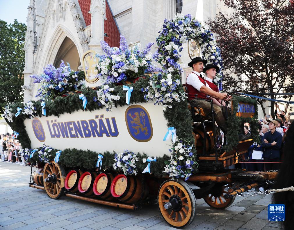 9月16日,人們駕駛本地著(zhù)名啤酒品牌的馬車(chē)參加德國慕尼黑啤酒節開(kāi)幕大游行。