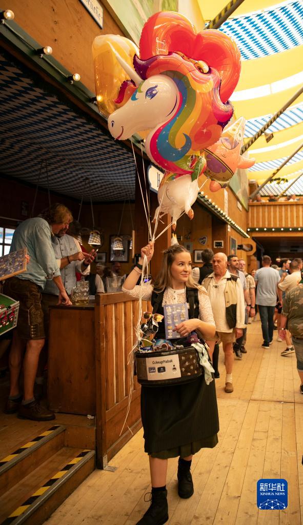 9月16日,工作人員在德國慕尼黑啤酒節上售賣(mài)氣球。
