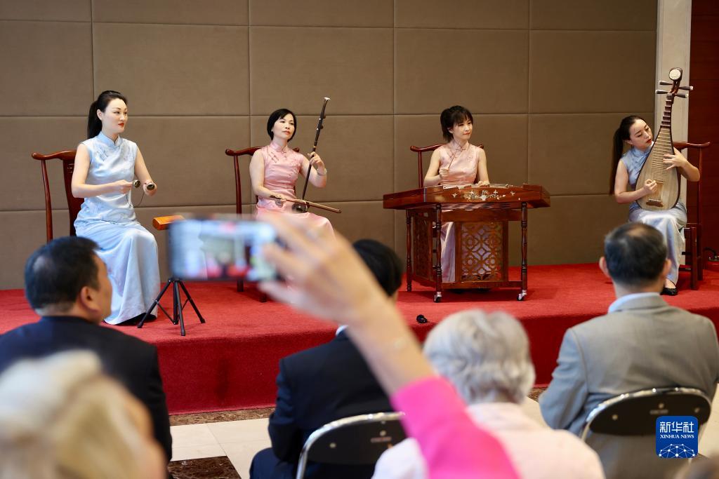 9月16日,參觀(guān)者在比利時(shí)布魯塞爾的中國使館開(kāi)放日活動(dòng)上觀(guān)看“江南絲竹”民樂(lè )演出。