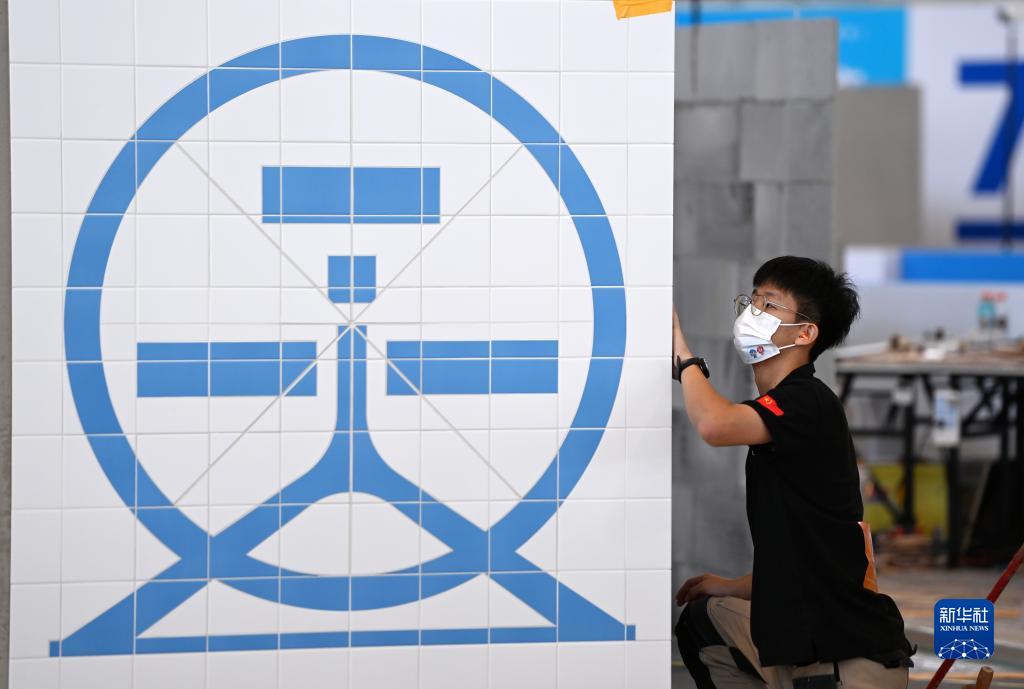 9月17日,參賽選手在參加瓷磚貼面項目比賽。