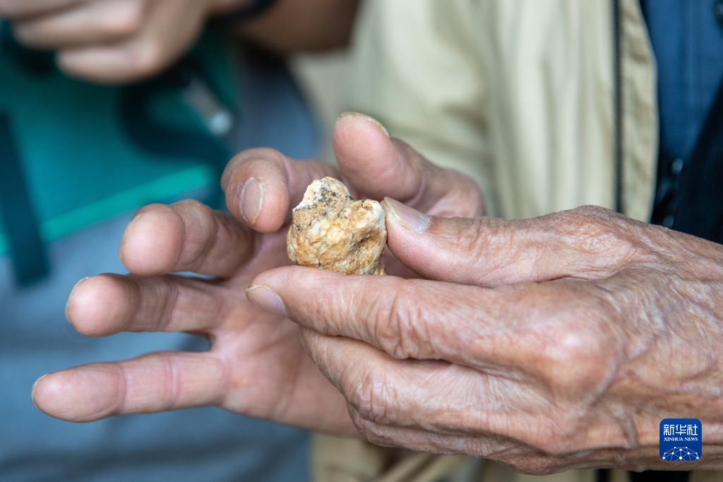 9月14日,黃萬(wàn)波與考古發(fā)掘隊隊員在仔細觀(guān)察剛出土的化石。