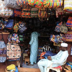 喀麥隆雅溫得手工藝品市場(chǎng)約有30余個(gè)店鋪,售賣(mài)面具、雕像、飾品、非洲鼓、繪畫(huà)、筐籃等各類(lèi)手工藝品。