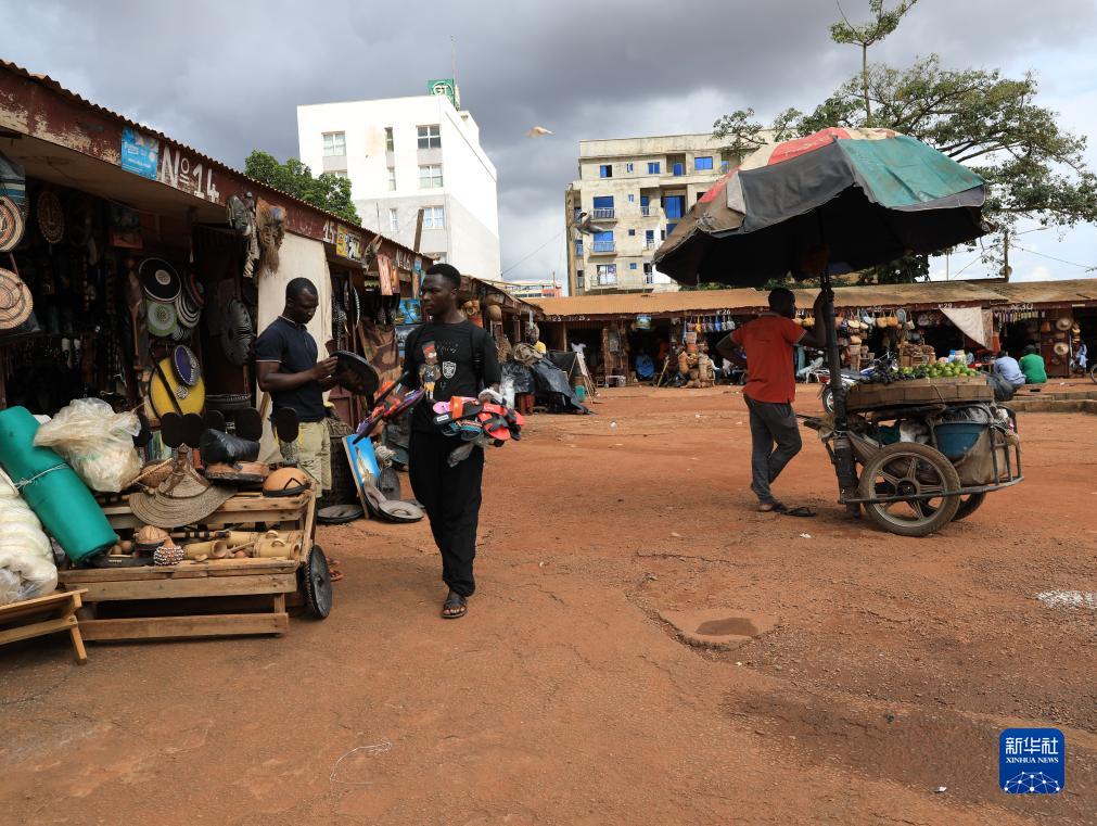 這是9月16日拍攝的喀麥隆雅溫得手工藝品市場(chǎng)。