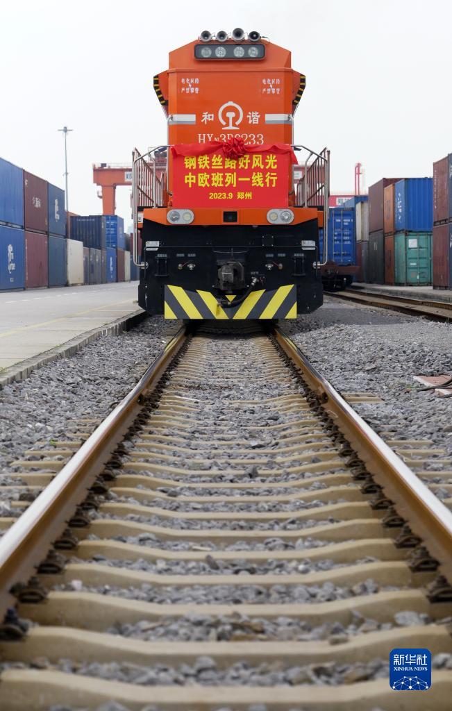 9月17日,X8202次中歐班列(鄭州)??吭趪F集團鄭州局圃田車(chē)站。
