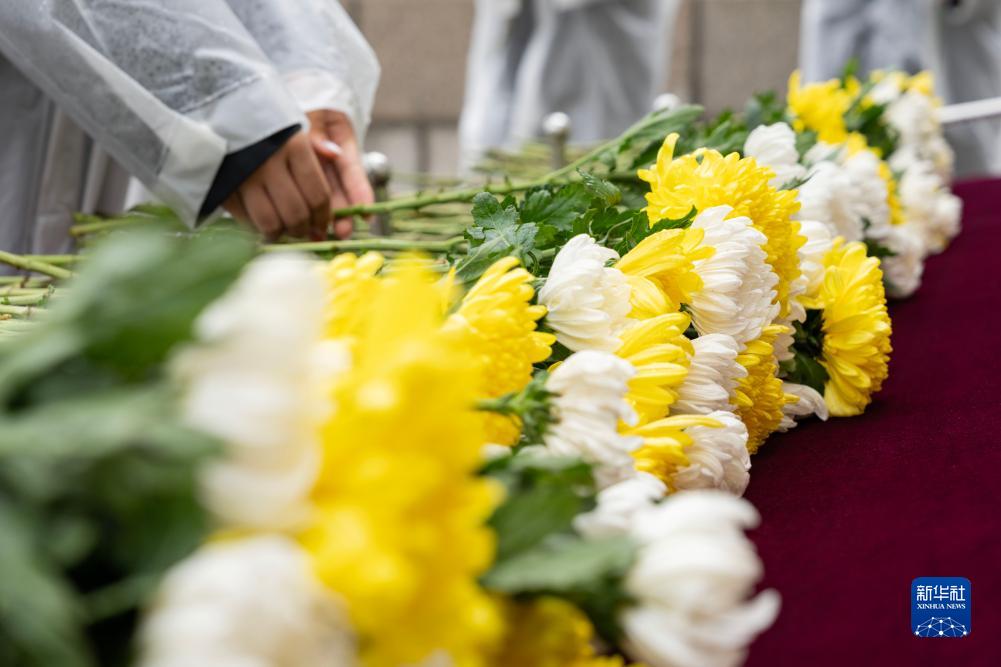 9月18日,在哈爾濱市道外區長(cháng)青公園,人們在東北抗日暨愛(ài)國自衛戰爭烈士紀念塔前獻花。