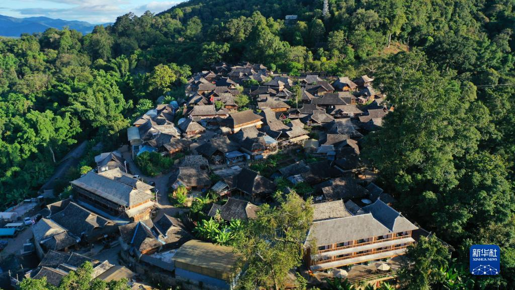這是9月17日拍攝的景邁山翁基古寨(無(wú)人機照片)。