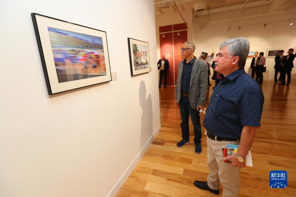 9月18日,人們在卡塔爾多哈參觀(guān)“你好,北京”攝影展。