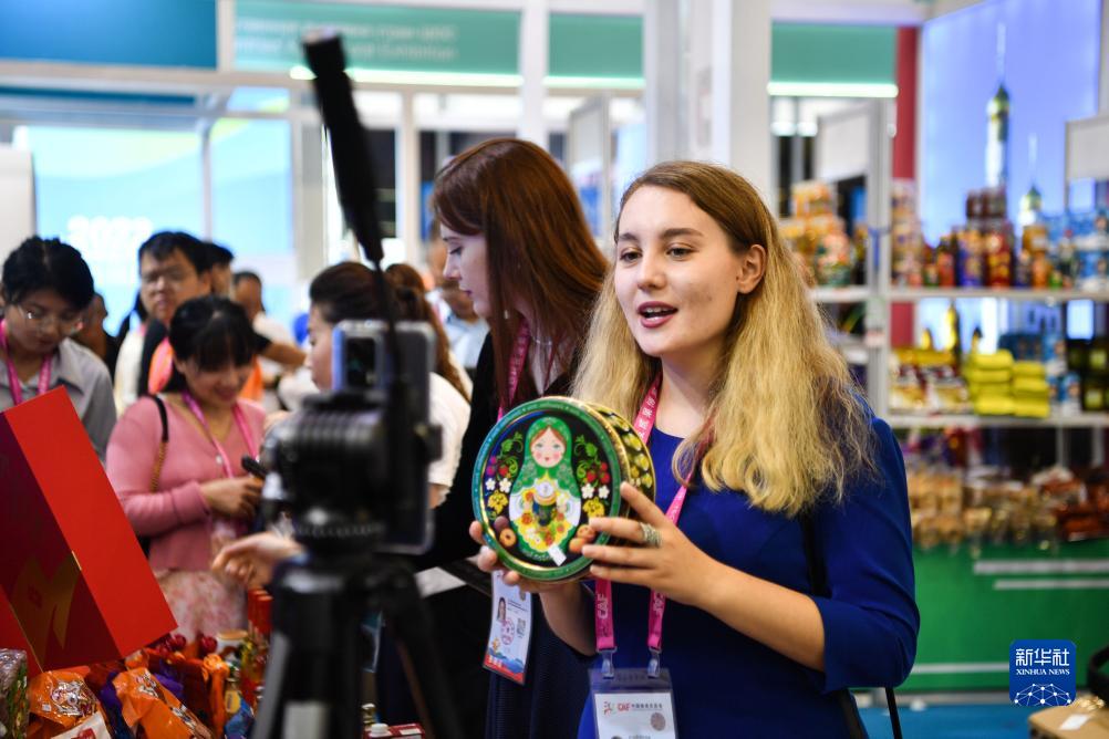 9月19日,來(lái)自俄羅斯的參展商在楊凌農高會(huì )展臺進(jìn)行直播。