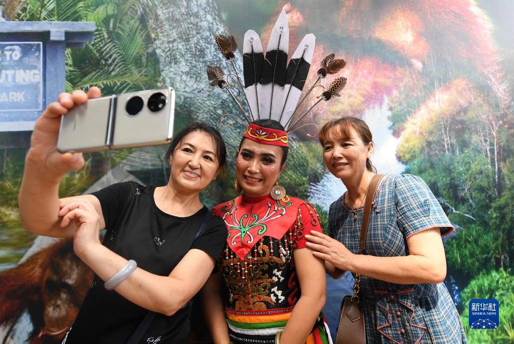 9月19日,觀(guān)眾在東博會(huì )上和來(lái)自印度尼西亞的演員(中)合影。