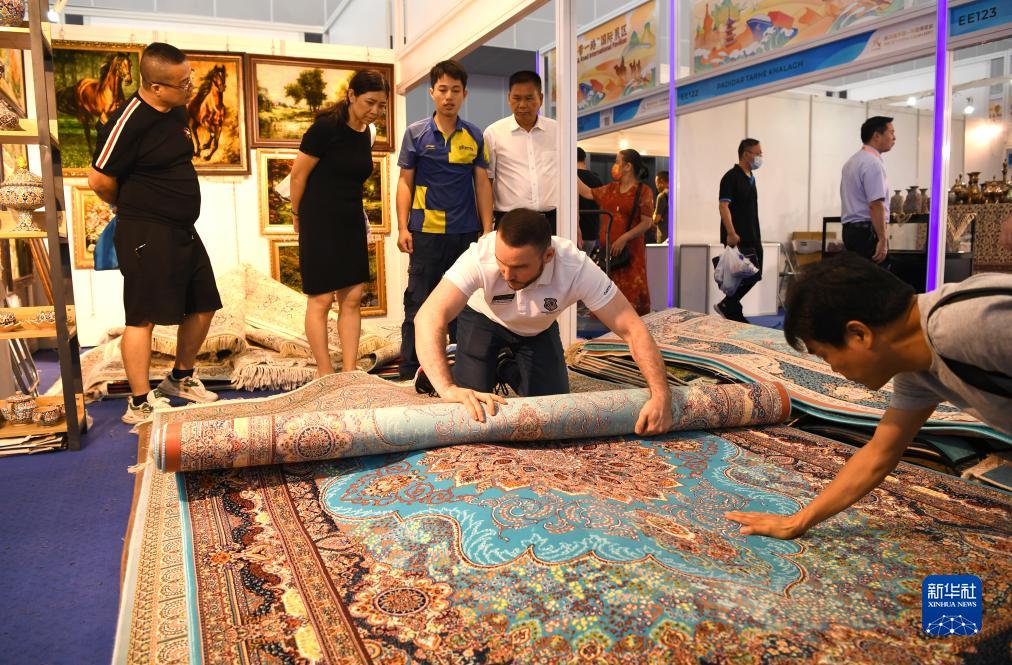 9月19日,觀(guān)眾在東博會(huì )現場(chǎng)選購伊朗地毯。
