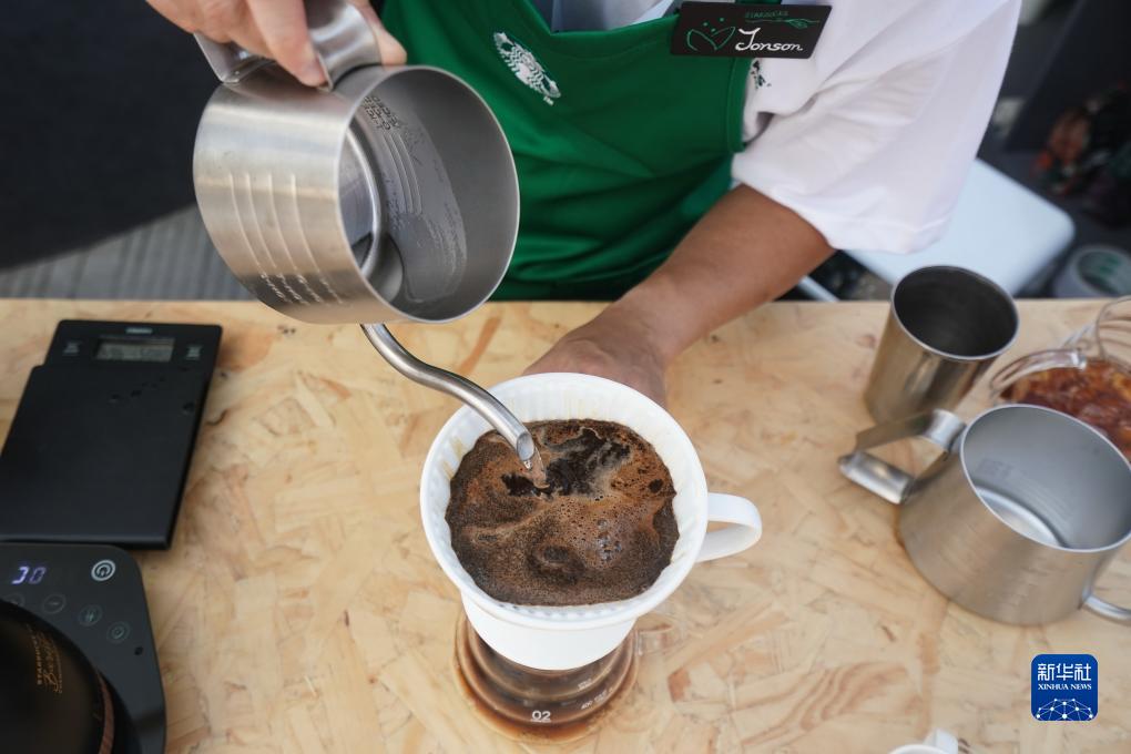 9月19日,在星巴克中國咖啡創(chuàng )新產(chǎn)業(yè)園開(kāi)園儀式現場(chǎng),工作人員制作咖啡。