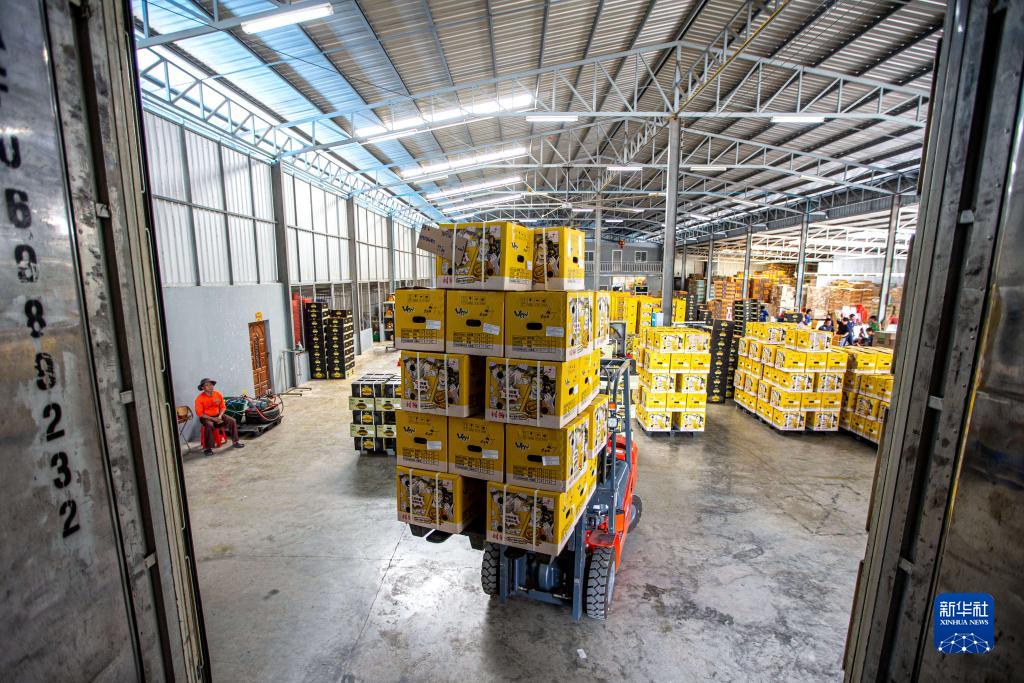 9月19日,在泰國春蓬府一家榴蓮工廠(chǎng)內,工作人員將包裝好的榴蓮裝車(chē)。