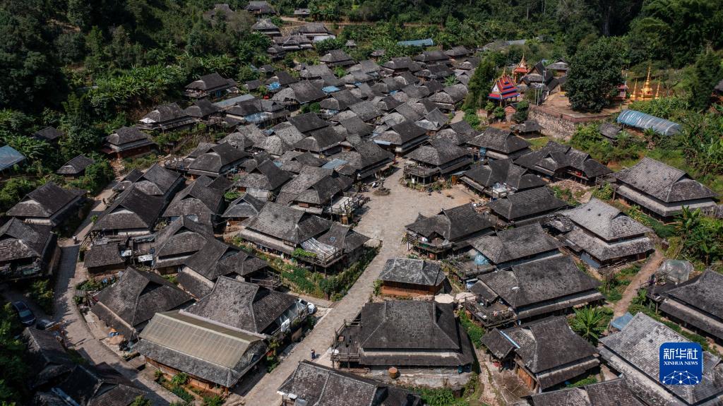 9月14日拍攝的景邁山糯崗老寨一景(無(wú)人機照片)。