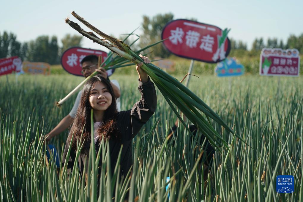 9月20日,在北京市平谷區東高村鎮趙家務(wù)村大蔥種植基地,市民在活動(dòng)現場(chǎng)體驗拔大蔥。