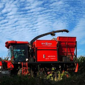 9月20日,在山東省新泰市禹村鎮,一臺玉米聯(lián)合收割機在收獲成熟的玉米。