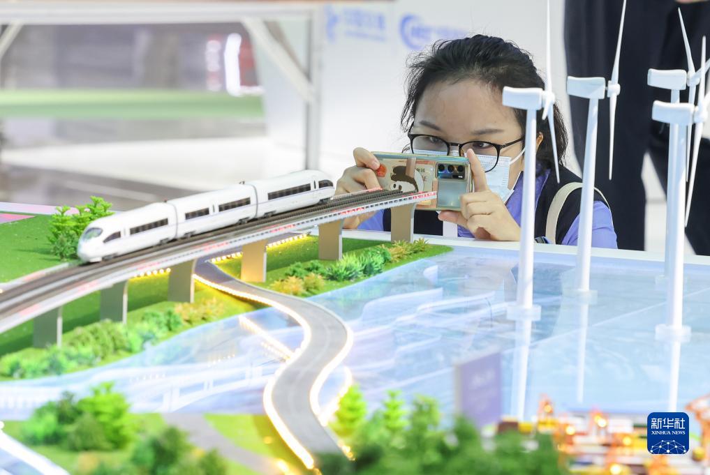9月26日,一名參觀(guān)者在中國交建的展臺拍攝。