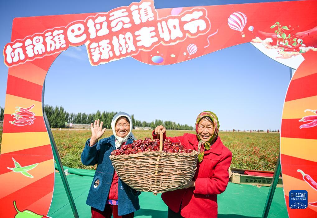 當日,內蒙古鄂爾多斯市杭錦旗巴拉貢鎮舉行辣椒豐收節慶?;顒?dòng)。此次活動(dòng)包含文藝匯演、特色農產(chǎn)品展銷(xiāo)、辣椒采摘比賽、吃辣椒大賽等多項內容,吸引眾多群眾前來(lái)參觀(guān)、體驗。