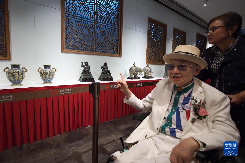 9月26日,張宗憲先生在上海博物館介紹他捐贈的銅胎掐絲琺瑯器。