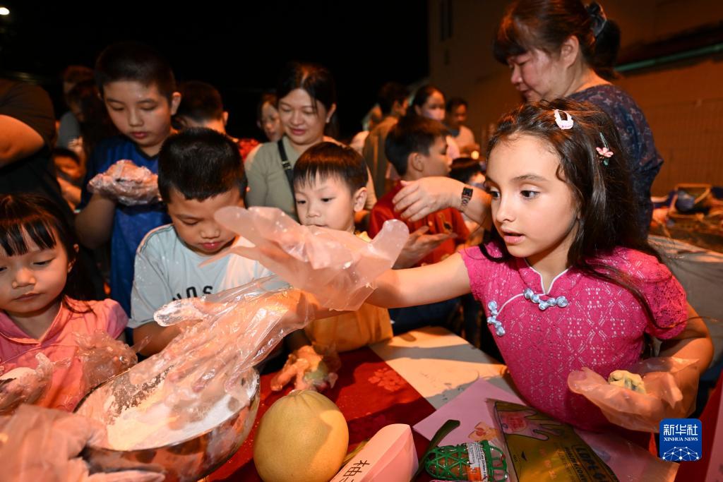 9月27日,在馬來(lái)西亞馬六甲州丹絨吉寧舉辦的中秋晚會(huì )上,兒童參加制作月餅活動(dòng)。