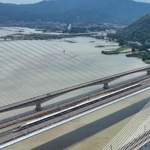 9月28日,復興號智能動(dòng)車(chē)組從福廈高鐵烏龍江大橋上駛過(guò)(無(wú)人機照片)。
