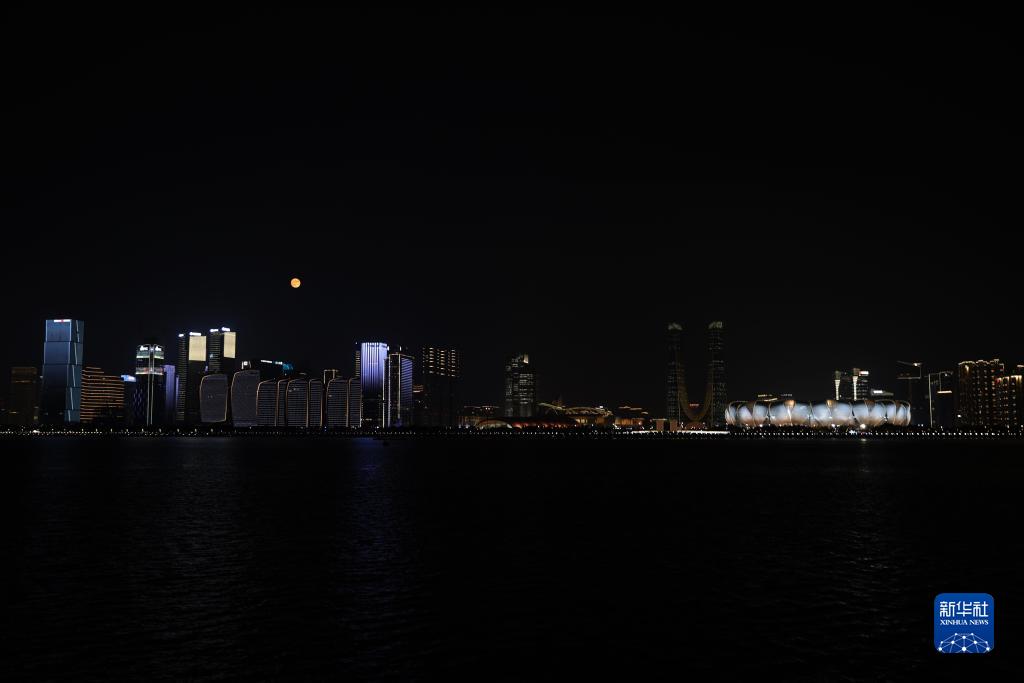 中秋佳節當晚,一輪滿(mǎn)月高懸在杭州上空,吸引眾多市民游客觀(guān)賞。