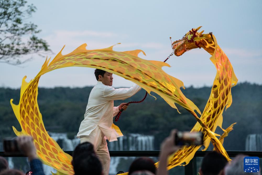 9月29日,演員在巴西伊瓜蘇舉行的中秋晚會(huì )上進(jìn)行舞龍表演。