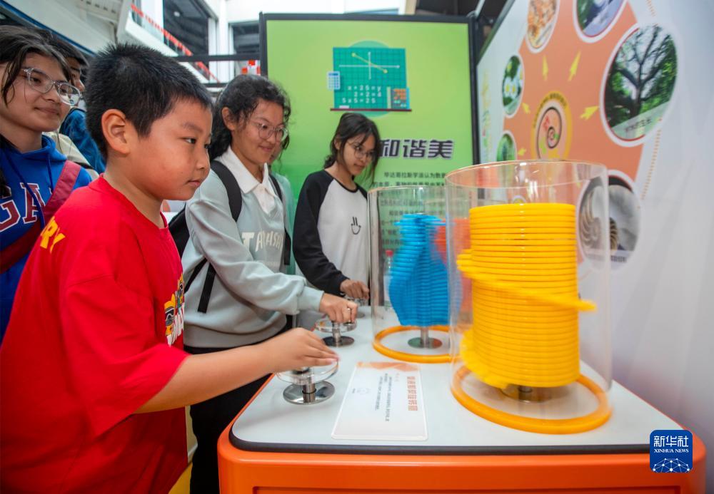 10月2日,小朋友在江蘇泰州科技館參觀(guān)體驗。