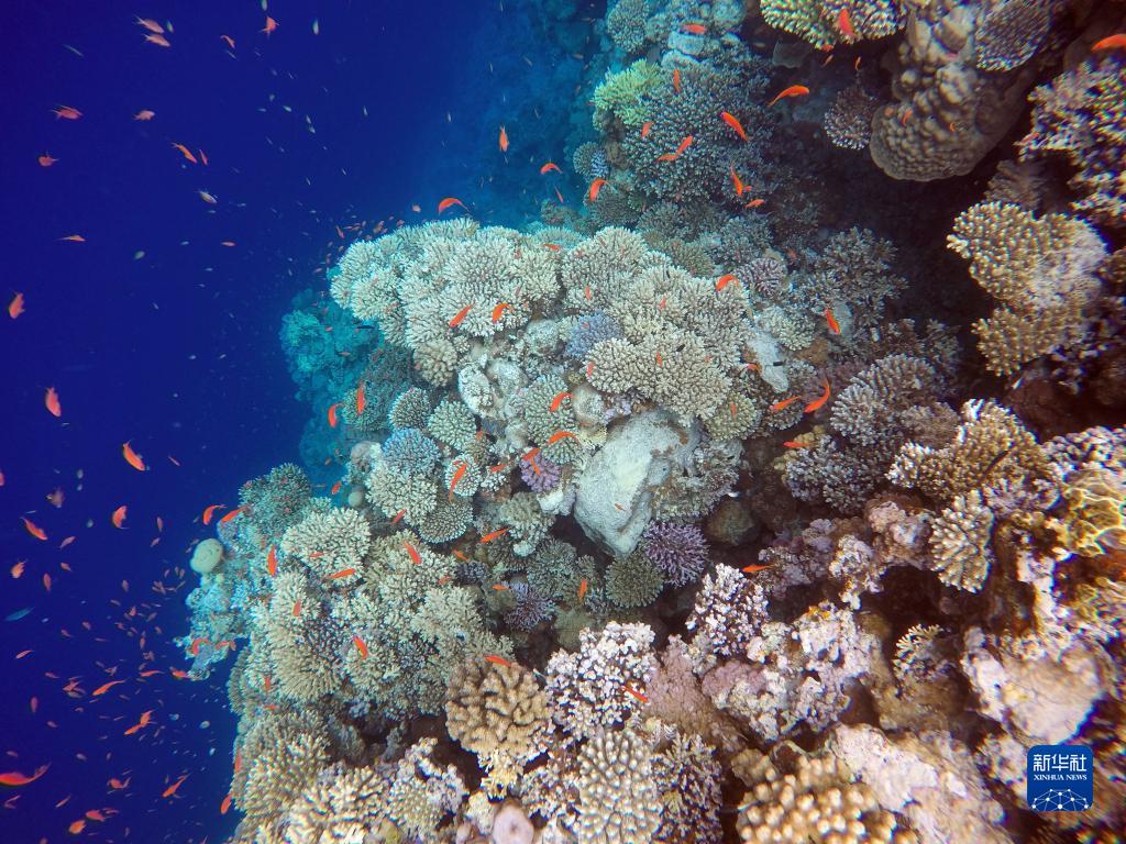 這是10月2日在埃及西奈半島達哈布藍洞內拍攝的珊瑚和魚(yú)類(lèi)。