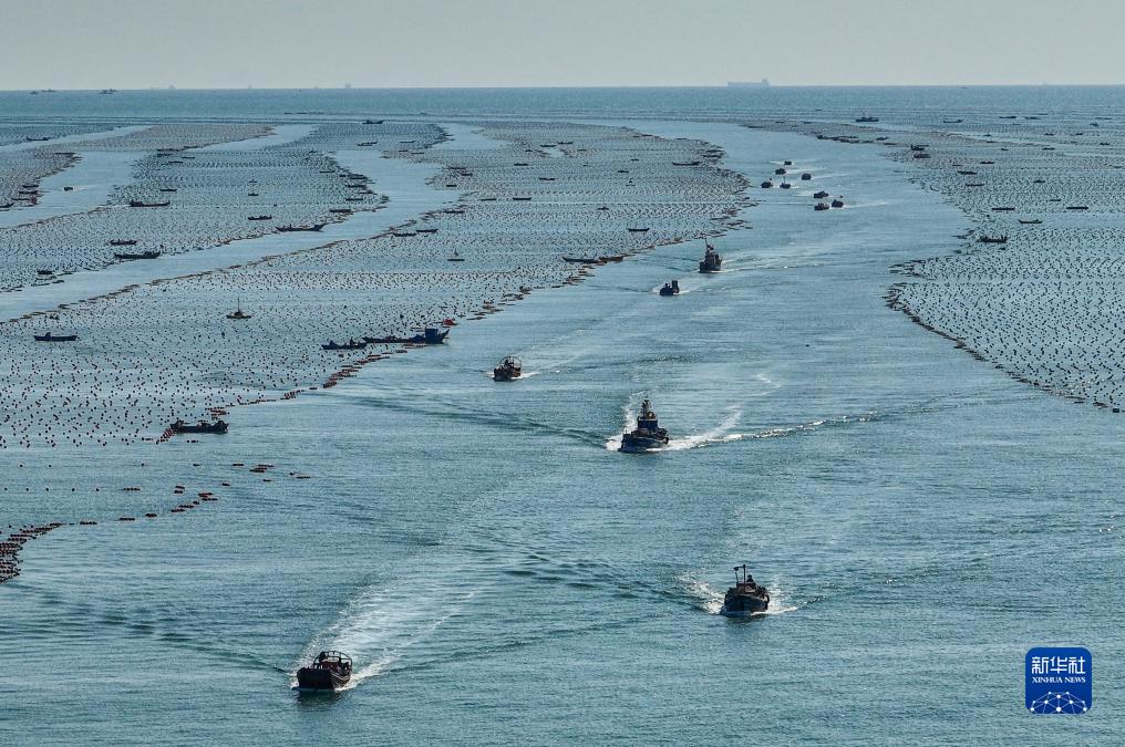 金秋時(shí)節,在山東省榮成市,各大海洋牧場(chǎng)海上養殖區一派繁忙景象,漁民駕駛漁船、舢板出海作業(yè),在碧海上“繪”出一幅幅秋日漁耕圖。