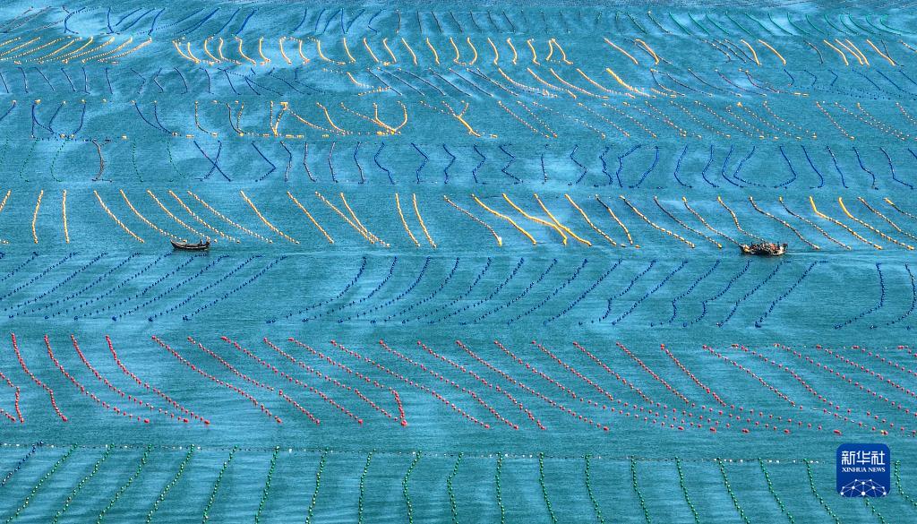 金秋時(shí)節,在山東省榮成市,各大海洋牧場(chǎng)海上養殖區一派繁忙景象,漁民駕駛漁船、舢板出海作業(yè),在碧海上“繪”出一幅幅秋日漁耕圖。