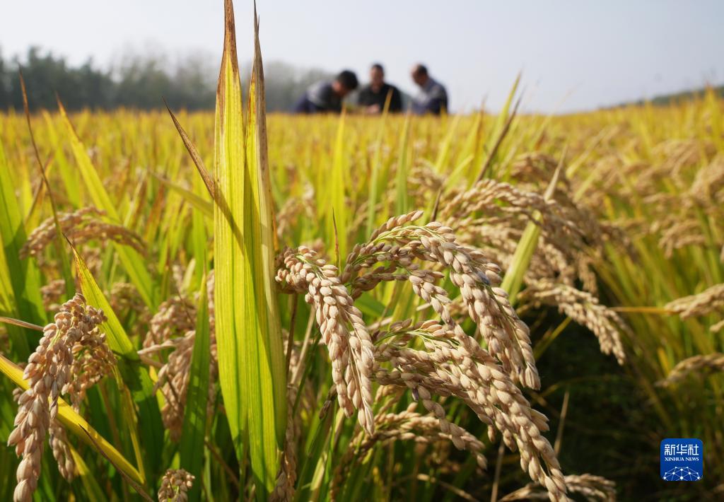 10月11日,農業(yè)科研人員在河北省唐山市曹妃甸區第五農場(chǎng)鹽堿地改良而成的高標準稻田內工作。