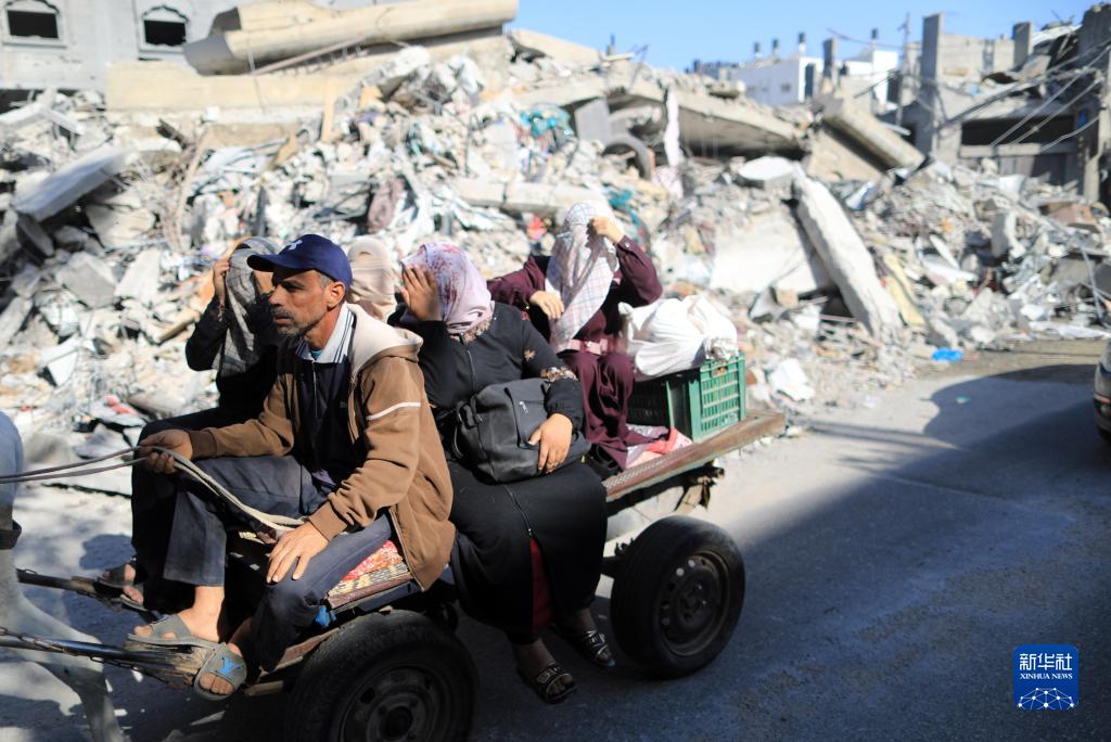 10月13日,在加沙地帶南部地區,人們逃離家園。