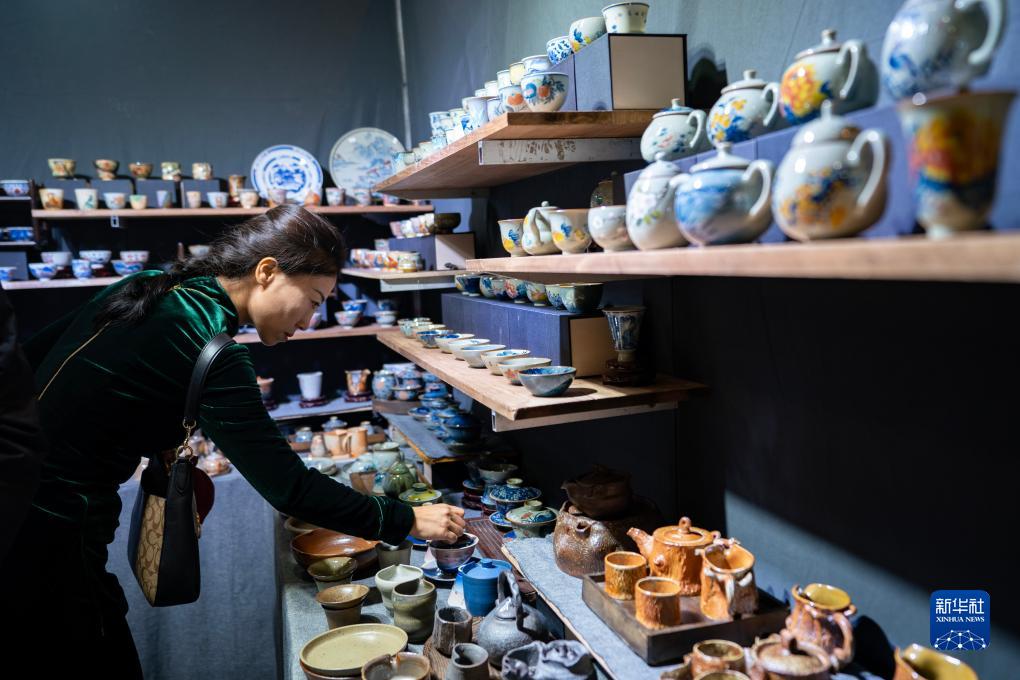 10月13日,參觀(guān)者在第十五屆中國云南普洱茶國際博覽交易會(huì )上挑選茶具。