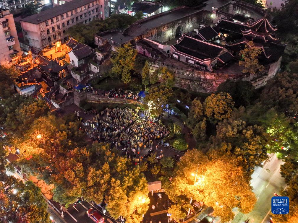 10月13日拍攝的貴陽(yáng)市文昌閣路邊音樂(lè )會(huì )現場(chǎng)(無(wú)人機照片)。