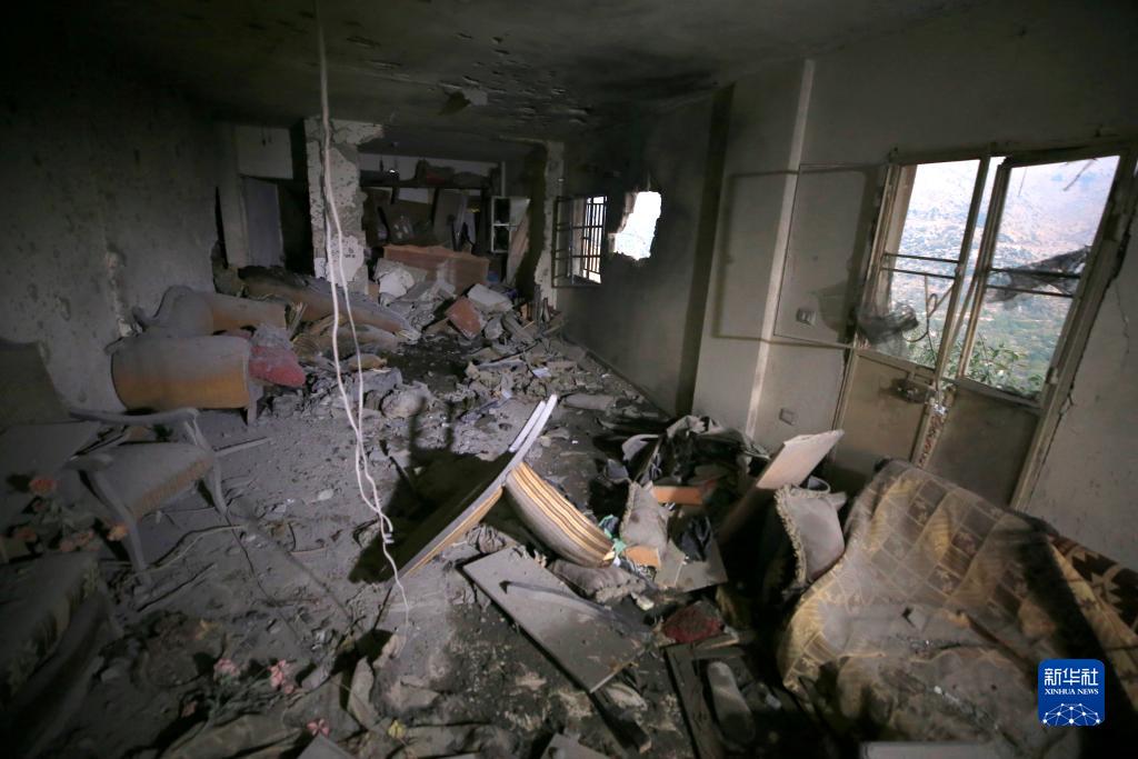 這是10月14日在黎巴嫩南部薩巴阿鎮拍攝的遭以軍炮擊身亡的一對老夫婦的家。