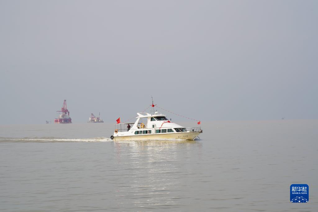 在山東省東營(yíng)市黃河入???,黃河匯入渤海。黃色的河水和藍色的海水之間形成了一條“分界線(xiàn)”,河黃海清,涇渭分明。