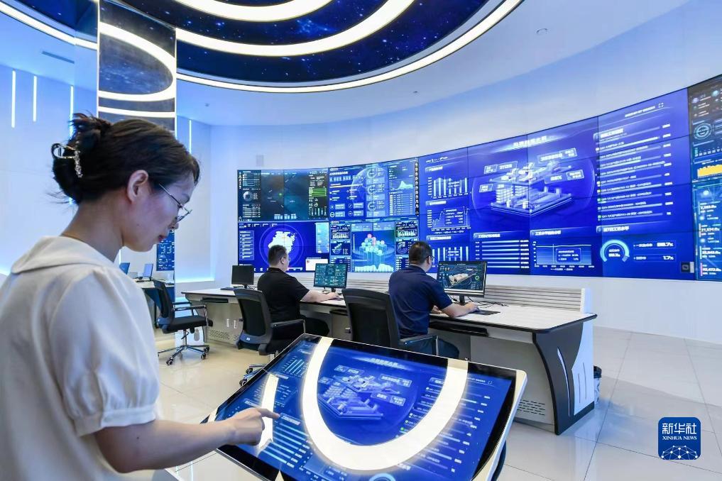 工作人員在浙江迎豐科技股份有限公司的“智慧工廠(chǎng)”處理數據(7月27日攝)。